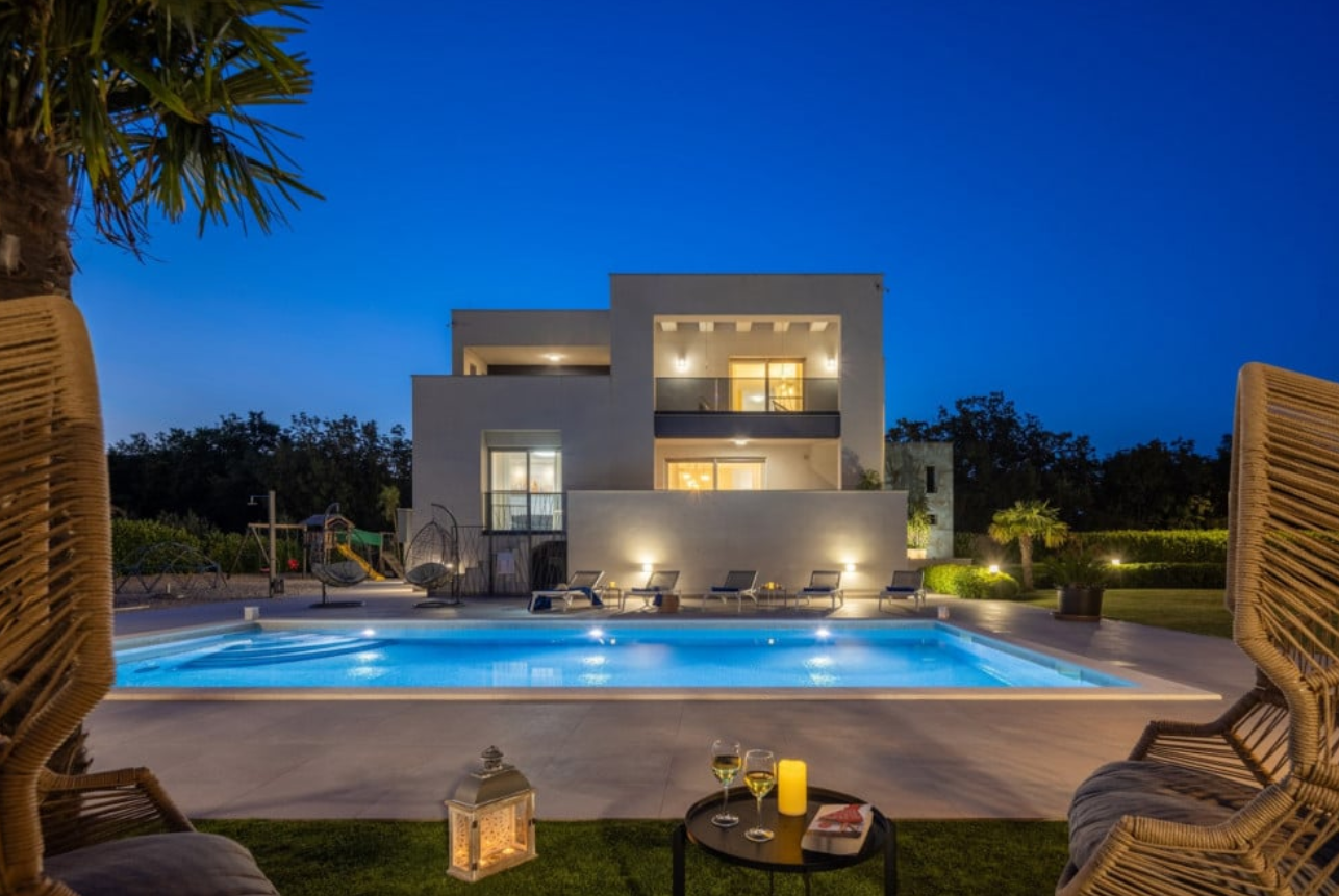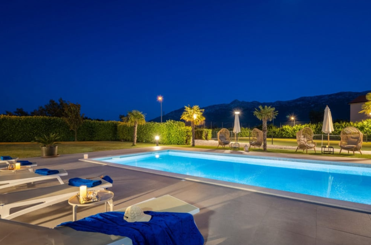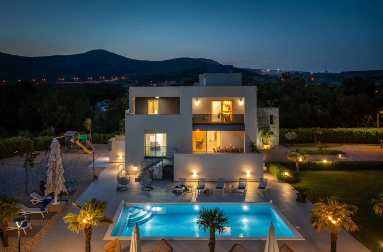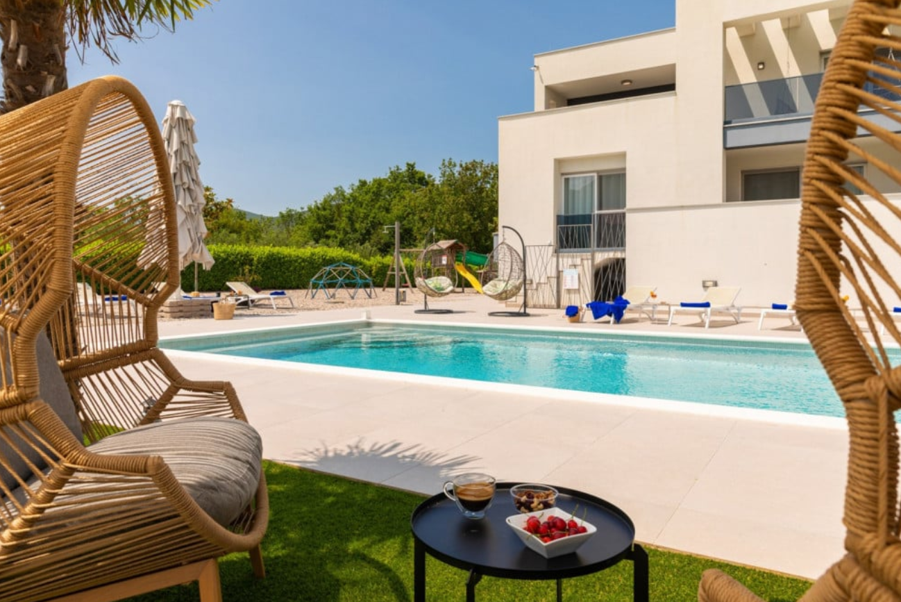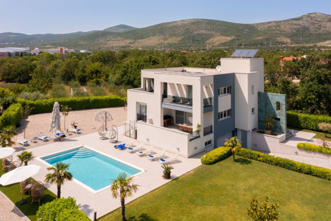 Experience the ultimate in luxury and relaxation at Split 21, an exclusive villa nestled in the picturesque landscapes of Dugopolje. This modern retreat features six beautifully designed bedrooms and six stylish bathrooms, providing ample space to comfortably accommodate up to twelve guests. Ideal for families or groups, the villa is equipped with plush king-sized and double beds, ensuring a restful and serene stay. The expansive indoor and outdoor living spaces offer everything you need for a memorable getaway—whether it’s lounging on the sun-drenched terraces, enjoying a meal on the veranda, or dining alfresco in the garden with a BBQ for cooking up delicious meals. Guests can unwind by the private pool or bask in the Croatian sunshine.
