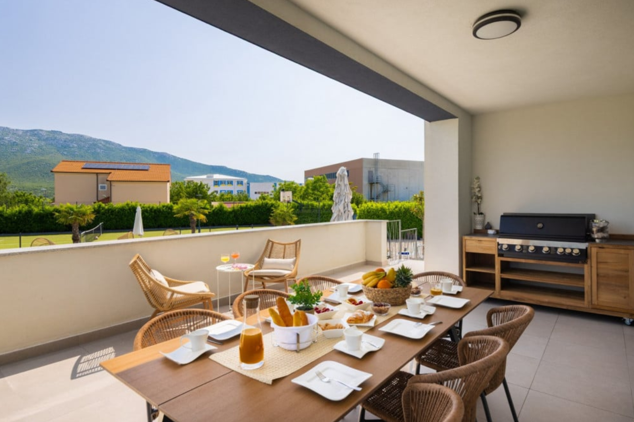 Split 21 has been crafted with both relaxation and entertainment in mind. With top-notch amenities, including a heated swimming pool, tennis court, game room with pool table and foosball, and a fitness center, there’s never a dull moment. Children can enjoy the playground, while adults can indulge in the sauna for some much-needed relaxation. The villa is also equipped with modern conveniences like Wi-Fi, air conditioning, and central heating, ensuring comfort throughout the year. Located just a short drive from Split, Split 21 offers an ideal base for exploring the region’s rich cultural and historical heritage, with attractions such as Klis Fortress and the Salona ruins nearby. Combining a peaceful setting with access to vibrant local life and a host of outdoor activities like cycling and hiking, this villa offers the perfect blend of serenity and adventure along the stunning Croatian coast.